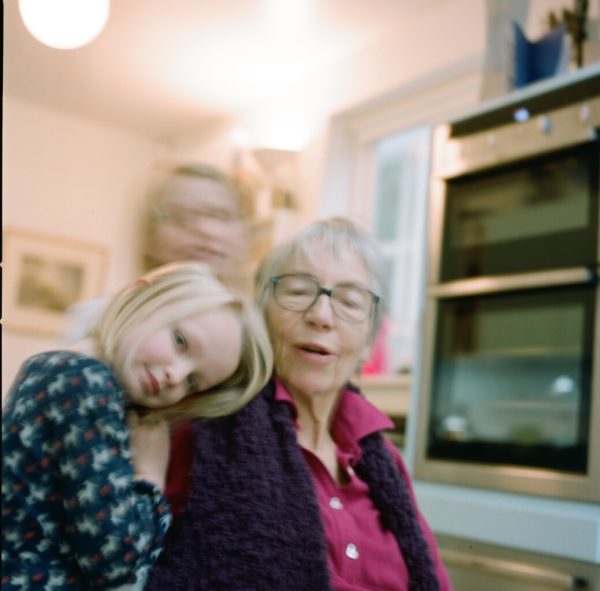 My mother had my daughters to stay on many a Saturday night, so my husband and I could go to the movies or walk in the park. Precious time out. I took these photographs with my Hasselblad just two or three, when I picked the girls up on Sunday morning. It was important for me to record this time on film, these memoirs imprinted on negative, not digital. A project I thought I would do for ages. My daughter’s growing up, my Mum getting older. Half of these I showed at her Memorial. I uncovered the rest recently, 2 years after her death, giving me space from my raw grief to enjoy them.